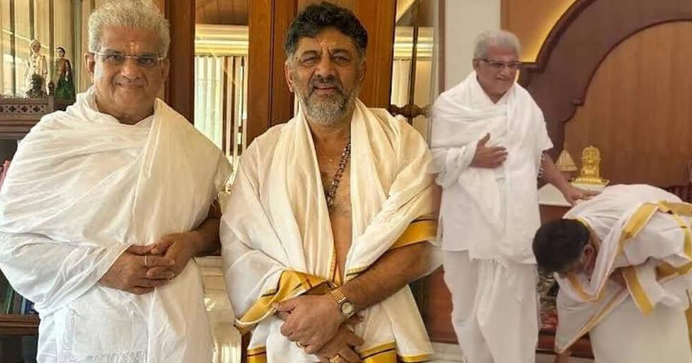 ಏಕಾಏಕಿ ಧರ್ಮಸ್ಥಳಕ್ಕೆ ಬಂದು ವೀರೇಂದ್ರ ಹೆಗ್ಗಡೆಯ ಕಾಲಿಗೆ ಬಿದ್ದ ಡಿಕೆ ಶಿವಕುಮಾರ್