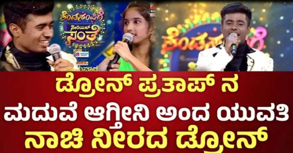 ನಿಮ್ಮನ್ನು ಮದುವೆಯಾಗಲು ಬಂದಿದ್ದೇವೆ ಎಂದಿದ್ದಾರೆ. ಇದನ್ನು ಕೇಳಿ ಡ್ರೋನ್​ ಪ್ರತಾಪ್​ ನಾಚಿ ನೀರಾಗಿದ್ದಾರೆ. ಯೇ ಯೇ ಎನ್ನುತ್ತಲೇ ಯುವತಿಯರಿಂದ ದೂರ ಸರಿಸಲು ನೋಡಿದ್ದು, ಸಭಿಕರು ಬಿದ್ದೂ ಬಿದ್ದೂ ನಕ್ಕಿದ್ದಾರೆ. ಇದರ ಪ್ರೊಮೋ ಅನ್ನು ಕಲರ್ಸ್​ ಕನ್ನಡ ವಾಹಿನಿ ಬಿಡುಗಡೆ ಮಾಡಿದೆ ಇದನ್ನು ಕೇಳಿ ಡ್ರೋನ್​ ಪ್ರತಾಪ್​ ನಾಚಿ ನೀರಾಗಿದ್ದಾರೆ. ಯೇ ಯೇ ಎನ್ನುತ್ತಲೇ ಯುವತಿಯರಿಂದ ದೂರ ಸರಿಸಲು ನೋಡಿದ್ದು, ಸಭಿಕರು ಬಿದ್ದೂ ಬಿದ್ದೂ ನಕ್ಕಿದ್ದಾರೆ. (ಮಿತ್ರರೇ ಕರ್ನಾಟಕದ ಪ್ರತಿಷ್ಠಿತ ನ್ಯೂಸ್ ಚಾನಲ್ Powerfullkarunadu.tech ವಾಹಿನಿಗೆ ಬೆಂಬಲಿಸಿ) ದಿನ ನಿತ್ಯದ ತಾಜಾ ಸುದ್ದಿಗಾಗಿ ಪವರ್ ಫುಲ್ ಕರುನಾಡು ವಾಹಿನಿಯನ್ನು ಲೈಕ್ ಮಾಡಿ ಶೇರ್ ಮಾಡಿ.