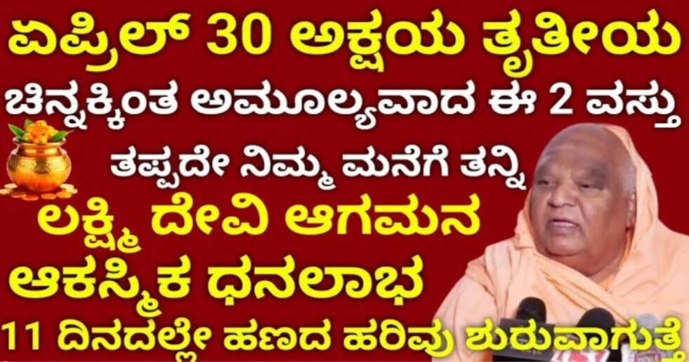 ಹಿಂದೂ ಧರ್ಮದಲ್ಲಿ, ಅಕ್ಷಯ ತೃತೀಯದ ದಿನವನ್ನು ಮಂಗಳ ಕಾರ್ಯಗಳಿಗೆ ಅತ್ಯಂತ ಮಂಗಳಕರವೆಂದು ಪರಿಗಣಿಸಲಾಗಿದೆ. ಈ ದಿನದಂದು, ತಾಯಿ ಲಕ್ಷ್ಮಿಯನ್ನು ಪೂಜಿಸಲಾಗುತ್ತದೆ. ಈ ವರ್ಷ ಅಕ್ಷಯ ತೃತೀಯ ಏಪ್ರಿಲ್ 30ರಂದು ಆಚರಣೆ ಮಾಡಲಾಗುತ್ತದೆ. ಜ್ಯೋತಿಷಿಗಳ ಪ್ರಕಾರ, ಅಕ್ಷಯ ತೃತೀಯದ ದಿನದಂದು ಚಿನ್ನವನ್ನು ಖರೀದಿಸುವುದು ಅತ್ಯಂತ ಮಂಗಳಕರವಾಗಿದೆ. ಇದರ ಹಿಂದಿನ ಧಾರ್ಮಿಕ ನಂಬಿಕೆಯೆಂದರೆ, ಈ ದಿನದಂದು ಪಡೆದ ಹಣ ಮತ್ತು ಆಸ್ತಿಯು ತುಂಬಾ ಪ್ರಯೋಜನಕಾರಿಯಾಗಲಿದೆ.