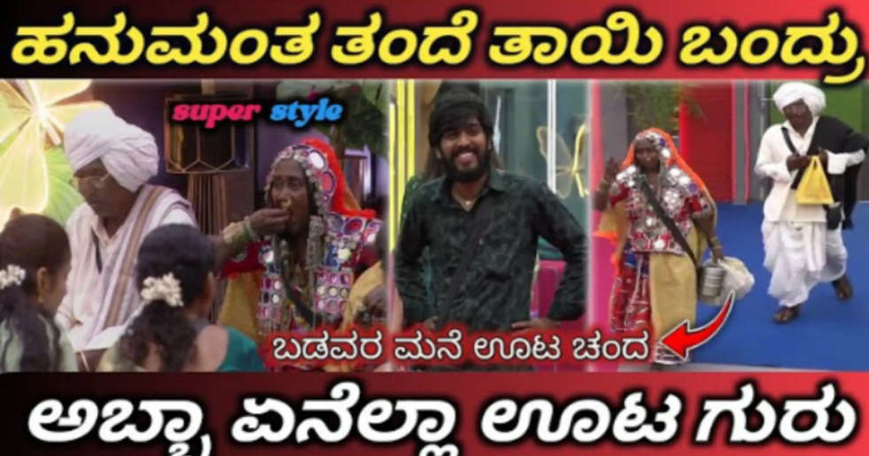 ಬಡಪಾಯಿ ಹನುಮಂತ ಬಿಗ್ ಬಾಸ್ ಮನೆಗೆ ಬಂದು ಸುಮಾರು ವಾರಗಳೆ ಕಳೆದಿದೆ. ಈ ಸಂಧರ್ಭದಲ್ಲಿ ಹನುಮಂತನ ತಂದೆ ತಾಯಿ ಬಿಗ್ ಬಾಸ್ ಮನೆಗೆ ಭೇಟಿ ಕೊಟ್ಟು ಭರ್ಜರಿ ಬೋಜನ ಮಾಡಿದ ದೃಶ್ಯವೊಂದು ಸಾಮಾಜಿಕ ಜಾಲತಾಣದಲ್ಲಿ ವೈರಲ್ ಆಗುತ್ತಿದೆ.