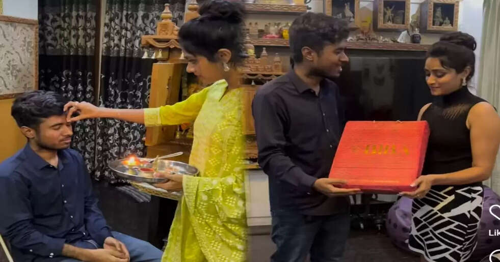 ಮನೆಗೆ ತಮ್ಮ ಬಂದ ಖುಷಿಯಲ್ಲಿ ಸಂಗೀತಾ ಶೃಂಗೇರಿ ಆರತಿ ಬೆಳಗಿ ಸ್ವಾಗತಿಸಿದ್ದಾರೆ. ಕೈಗೆ ರಾಖಿಯನ್ನೂ ಕಟ್ಟಿ ಸಂಭ್ರಮಿಸಿದ್ದಾರೆ. ಈ ಸಮಯದಲ್ಲಿ ಸಹೋದರನ ಕಾಲಿಗೆ ಬಿದ್ದು ನಮಸ್ಕರಿಸಿ ಆಶೀರ್ವದ ಪಡೆಯುವ ವ್ಯರ್ಥ ಪ್ರಯತ್ನವನ್ನೂ ಮಾಡಿದ್ದಾರೆ. ಇದೇ ರೀತಿ ಸಂಗೀತಾರ ಆಶೀರ್ವಾದ ಪಡೆಯುವ ಡ್ರೋನ್ ಪ್ರಯತ್ನವೂ ವ್ಯರ್ಥವಾಗಿದೆ. ಇಬ್ಬರ ಸ್ನೇಹ ಪ್ರೀತಿಯ ಮೇಲೆ ಯಾರ್ ಕೆಟ್ಟ ಕಣ್ಣು ಬೀಳದೆ ಇರಲಿ ಅಕ್ಕ ತಮ್ಮ ಸದಾ ನಗುತ್ತಾ ಇರಿ ಎಂದು ಫ್ಯಾನ್ಸ್ ಶುಭಹಾರೈಸಿದ್ದಾರೆ. (ಮಿತ್ರರೇ ಕರ್ನಾಟಕದ ಪ್ರತಿಷ್ಠಿತ ನ್ಯೂಸ್ ಚಾನಲ್ Powerfullkarunadu.tech ವಾಹಿನಿಗೆ ಬೆಂಬಲಿಸಿ) ದಿನ ನಿತ್ಯದ ತಾಜಾ ಸುದ್ದಿಗಾಗಿ ಪವರ್ ಫುಲ್ ಕರುನಾಡು ವಾಹಿನಿಯನ್ನು ಲೈಕ್ ಮಾಡಿ ಶೇರ್ ಮಾಡಿ.