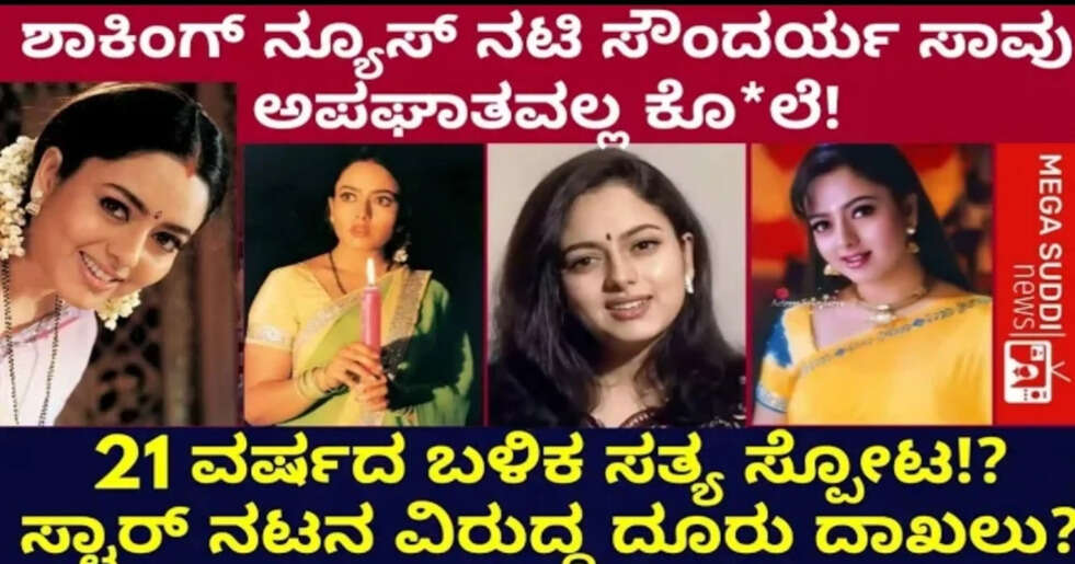 ಕನ್ನಡ ನಟಿ ಸೌಂದರ್ಯ 2004 ಏಪ್ರಿಲ್ 7ರಂದು ವಿಮಾನ ಅಪಘಾತದಲ್ಲಿ ಸಾವನ್ನಪ್ಪಿದರು. ಆದರೆ ಇದು ಅಪಘಾತವಲ್ಲ ಕೊಲೆ ಎಂದು ವ್ಯಕ್ತಿಯೊಬ್ಬರು ಪೊಲೀಸ್ ಠಾಣೆಯಲ್ಲಿ ದೂರು ನೀಡಿದ್ದಾರೆ. ನಟಿ ಸೌಂದರ್ಯ ವಿಮಾನ ಅಪಘಾತದಲ್ಲಿ ಸಾವನ್ನಪ್ಪಿಲ್ಲ, ಅವರನ್ನು ಕೊಲೆ ಮಾಡಲಾಗಿದೆ ಎಂದು ಸ್ಟಾರ್ ನಟನ ವಿರುದ್ಧ ದೂರು ದಾಖಲಿಸಲಾಗಿದೆ.